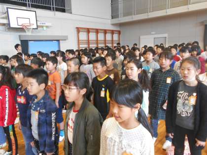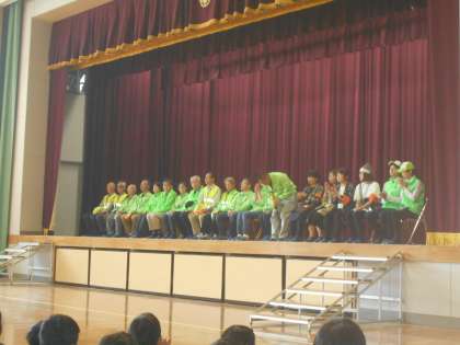 今日は、これから1年間みんなの登下校を見守って下さる、安全ボランティアさんの紹介がありました。