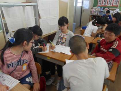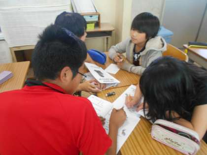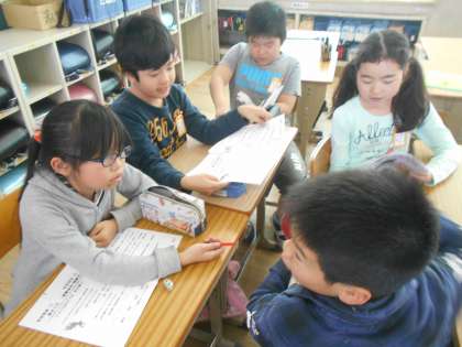 水曜日にある校外学習のグループごとに、班長・時計・保健・地図などの役割を決めました。
