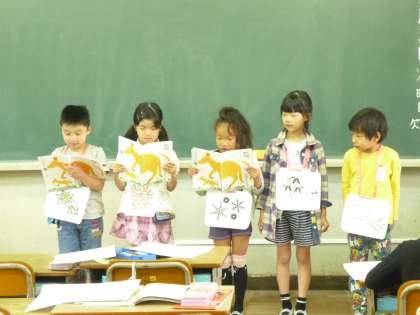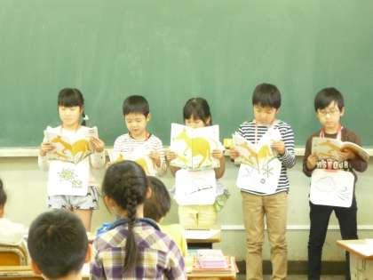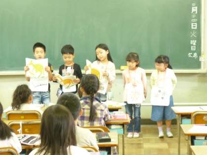 音読発表会本番です。緊張しながらも頑張って大きな声で発表してくれました。