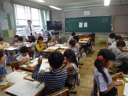 図工を参観していただきました。クレパスを使って,