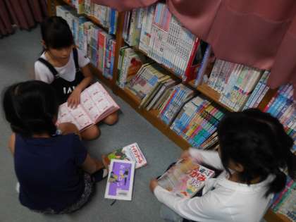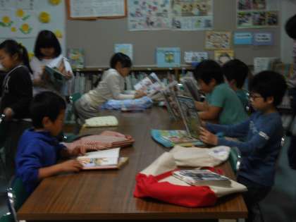 図書の時間に,本を選んでいます。先週から貸し出しを開始し,高学年に向けて1冊は読み物にも挑戦してほしいと思います。