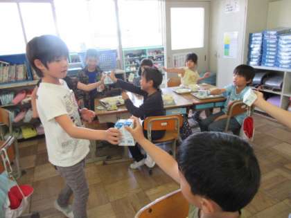 お誕生日の人と,牛乳で乾杯しました。
