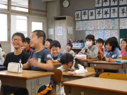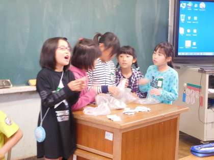 みんな遊び係さんが考えてくれた作文ゲームをしました。みんなが考えた文章をつなげていくととても面白い作文ができあがりました。