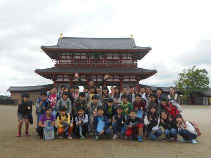 最後に朱雀門の前で、はいチーズ。