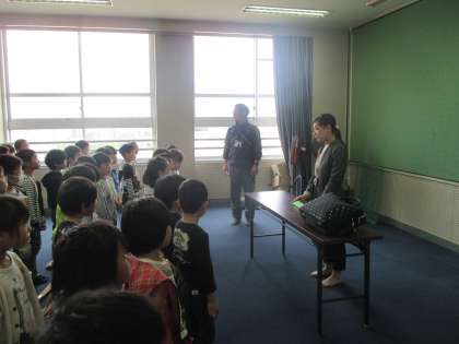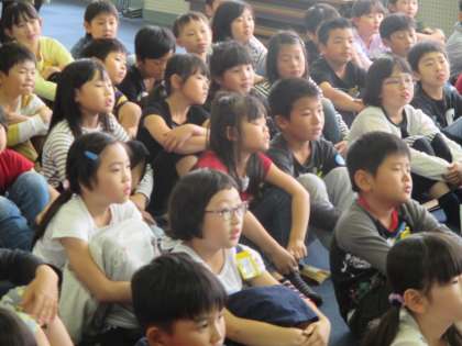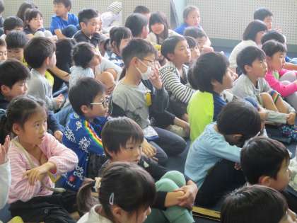 リコーダー講習の先生が来てくれました。いろいろな種類のリコーダーに興味津々です。