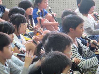 持ち方,タンギング,真剣に確認します。次回の音楽の授業が楽しみですね。