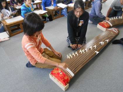 琴の演奏に挑戦しています。