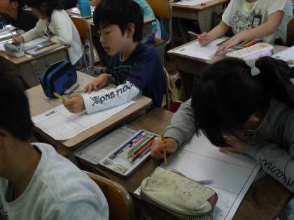 総合的な学習の時間に,新聞づくりをしました。初めに新聞のよさや工夫できることを話し合いました。テーマは「わたし新聞」として,いろいろな項目を考えて自分を表現できるように書いています。