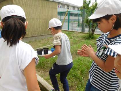 ヘチマとヒョウタンの種を植えました。芽が出てきたら,花壇へ植え替えます。