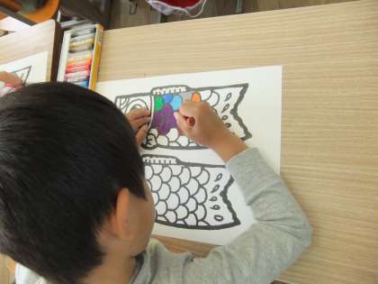 教室に飾っているこいのぼりとは別に,自分のオリジナルこいのぼりを作成中です。