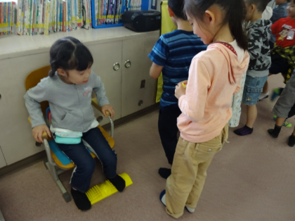 滑り止めマットを触ったり、工夫している椅子に座ってみたりしました。