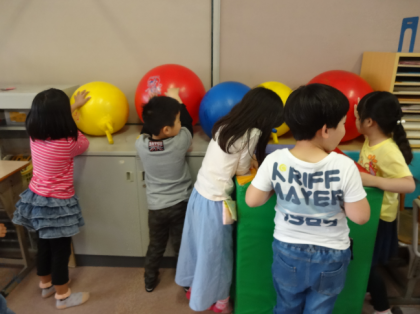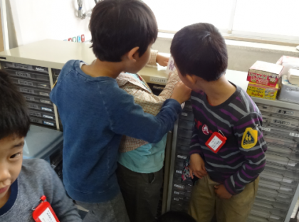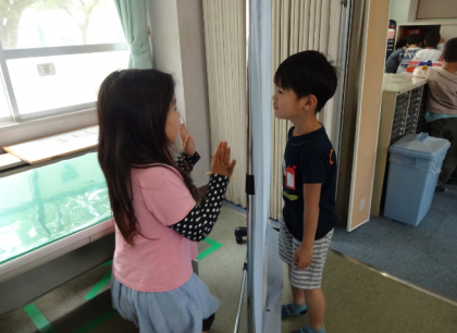 パーテーション(仕切り)を使って、学習に集中できるようにしています。「本当だ!見えないね。」と感想を言っていました。