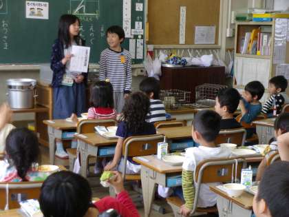 今日は、給食委員会の児童から給食目標のお知らせがありました。
