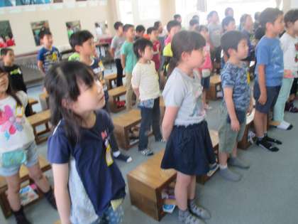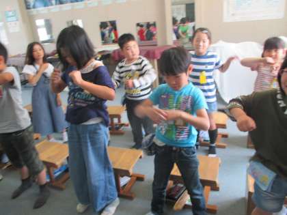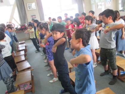 授業の前にストレッチをします。いい歌声を響かせましょう。
