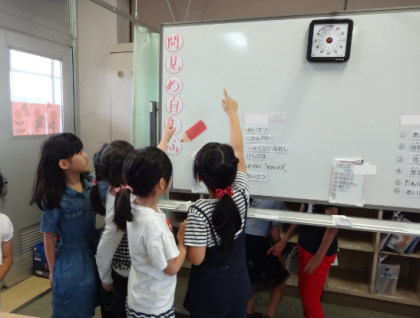 今日は2年2組と2年3組と、ふれあい授業をしました。教室見学では、とても意欲的に見ていました。