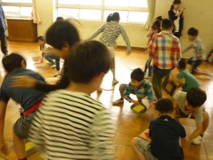 勝負の結果は…引き分けでした。振り返りで,「どちらも一回ずつ勝って,勝ち負けがなくてよかったです。」と発表している子がいました。