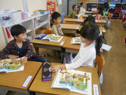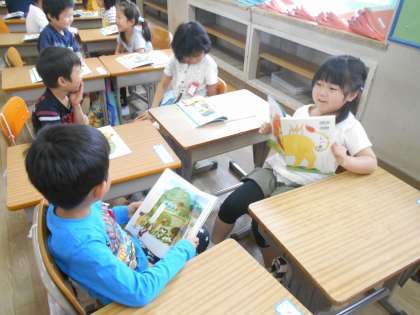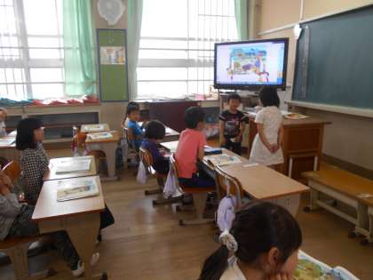 「えをみてはなそう」という学習をしました。絵を見ながら質問したり答えたりします。