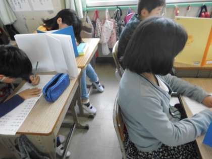漢字の小テストを行いました。テストのときだけでなく,常に丁寧に正しく書けるように心がけてほしいです。