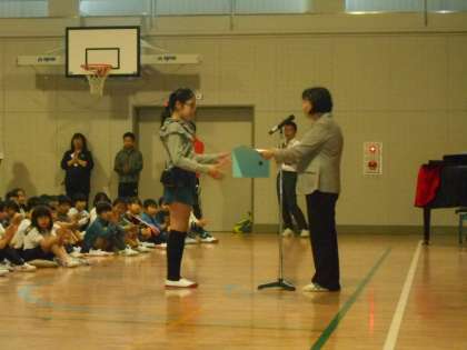 今日は、昨年度に描いた国際平和ポスターで最後まで審査に残った6年生の表彰がありました。