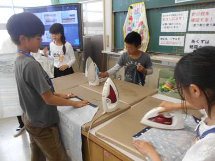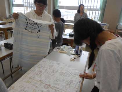 「楽しくソーイング」の学習では、エプロン作りに取り組んでいます。