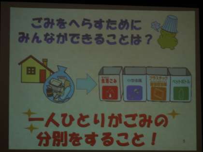 堺市役所から,ごみの量をへらすための取組を教えていただきました。わたしたちができることとして,ごみの分別について考えました。