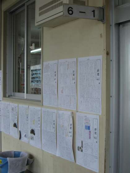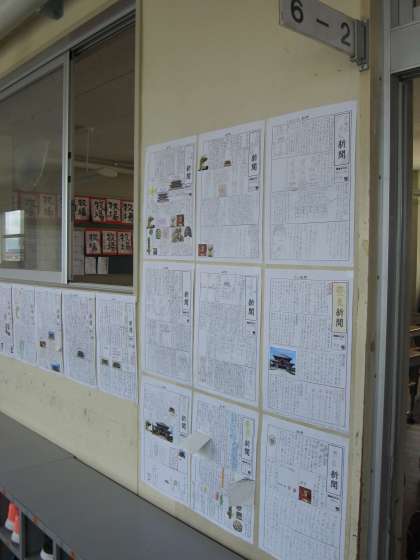 社会見学で学んだことを新聞にして,完成したものを廊下に張り出しました。