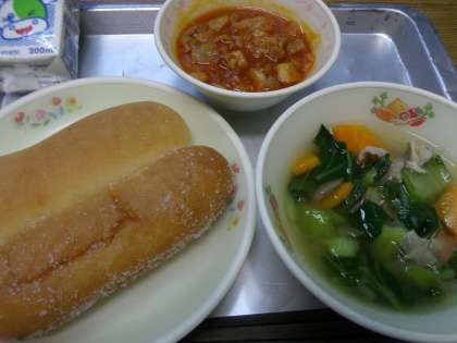 チンゲン菜スープ・鶏肉とキャベツのトマト煮