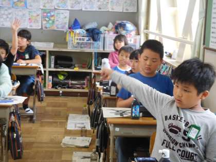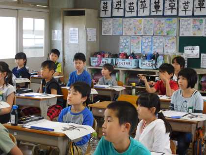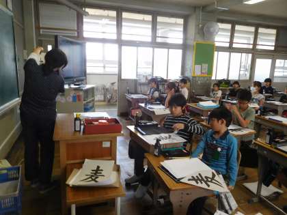 「麦」を書きました。右はらいがポイントの漢字でした。