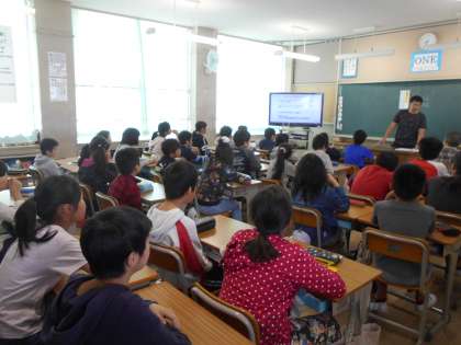 朝の時間に、なかよしの先生が「なかよし出前授業」をしに来てくれました。