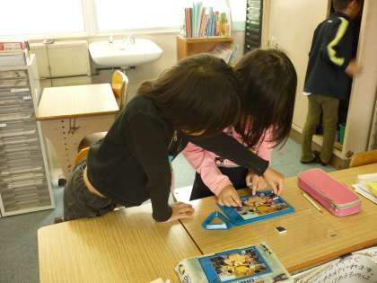 今日もなかよしに遊びに来てくれた2年生の友だちと協力してパズルに取り組んでいました。誘い合ったり、自然に集まったり、とてもいい雰囲気です。
