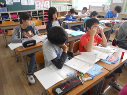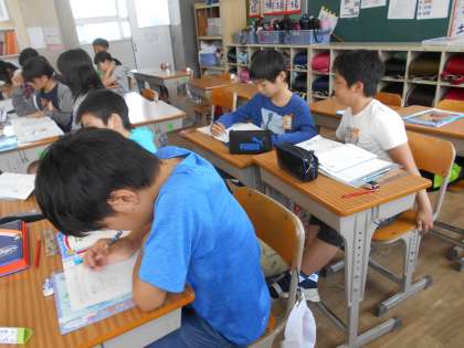 台形,平行四辺形などの四角形のどれが線対称,点対称であるか調べました。