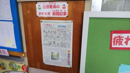 職員室前に,図書委員会の子たちが選んだ毎日子ども新聞の記事を掲載しています。職員室前を通る人たちが足を止めて見てくれるような記事を掲載できればいいなと思っています。