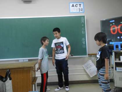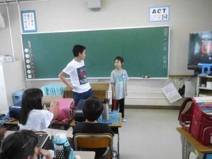 終わりの会でお笑い係がネタを披露しました。