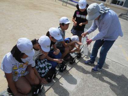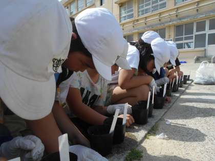 栽培委員会では、コスモスとヒマワリの種を植えました。