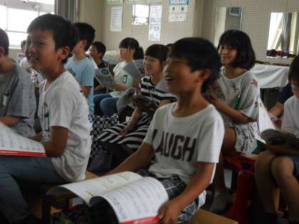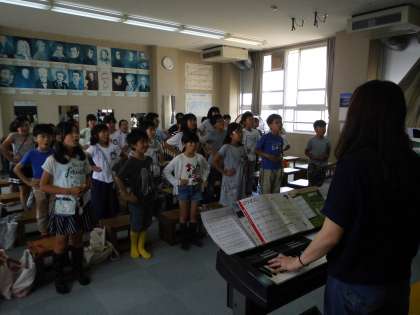お腹に手を当てながら声を出したりローソク消しをしたりして,腹式呼吸で歌うことを意識しました。