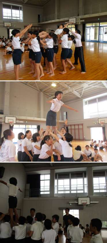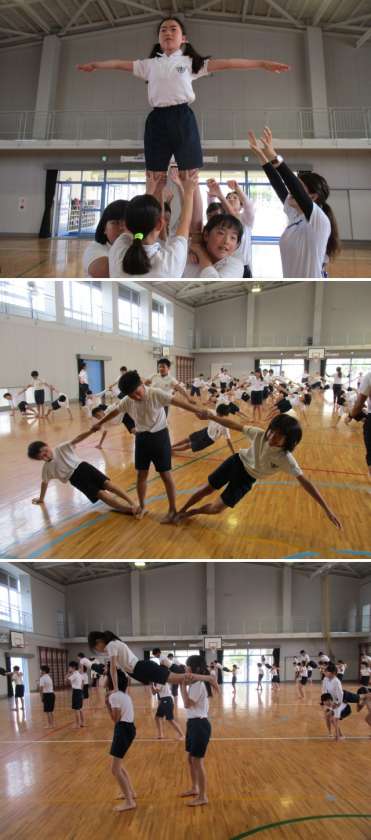 みんなで心と力を合わせて、大技に挑戦します。