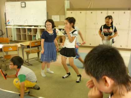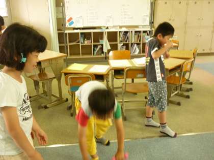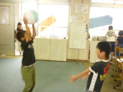 今日はお昼休みに2年生と3年生の児童がなかよしに遊びに来てくれました。ボールやピアノを使って一緒に遊びました。ミニダンベルをもって、「これ持てる?」と力比べをする場面もありました。