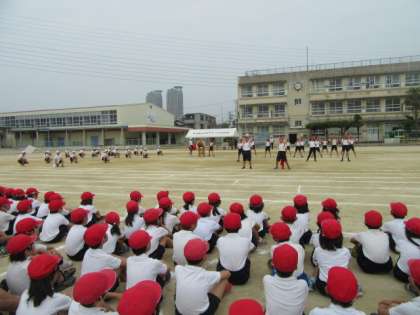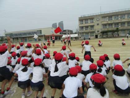 応援合戦,運動会の歌,大玉送り,閉会式などの練習をしました。