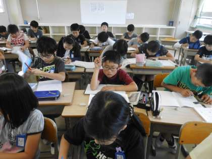 「小数のかけ算」の復習をしました。小数点の移動や打ち忘れに気をつけて計算しました。