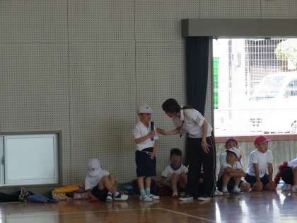 それぞれのクラスのダンスを見たあとに,お友だちのよかったところをみんなの前で発表しました。