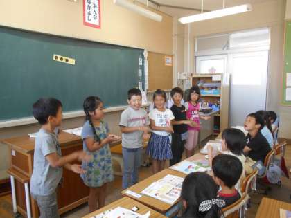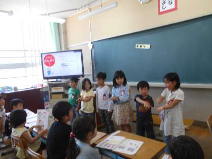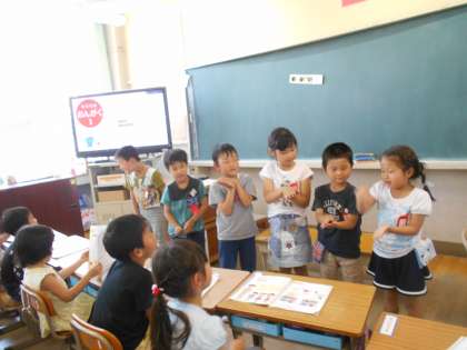タンタンタンウンのリズムに合わせて好きな食べ物を言いながら手をうちます。