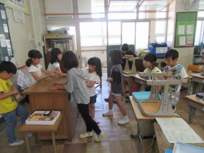椅子の足の裏の穴に,土が入らないように,布ガムテープを貼りました。係の人がテキパキとガムテープを切って,渡していました。隣の人が,お休みの人の椅子にも貼ってあげていました。