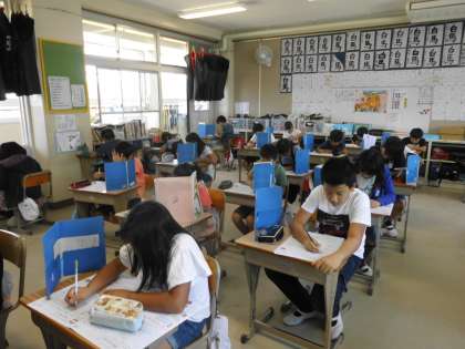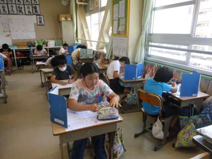 「小数のかけ算」のテストをしました。集中して取り組んでいました。