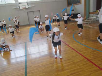 練習も大詰めです。振付の左右やひざの使い方など,細かいところを気を付けます。