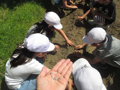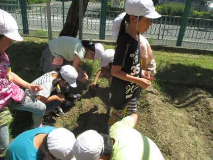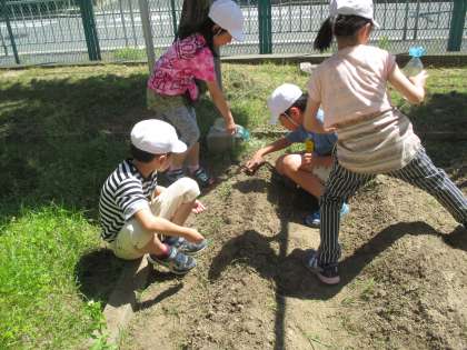 休み時間にヒマワリの種を植えました。大きく育ってほしいね。