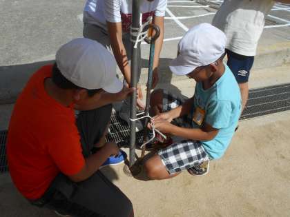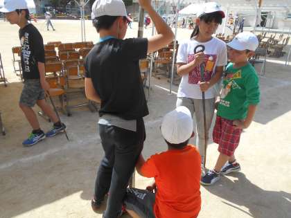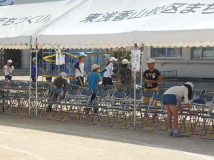 明日の体育大会に向けて、5・6年生が会場の準備をしました。
