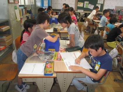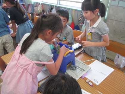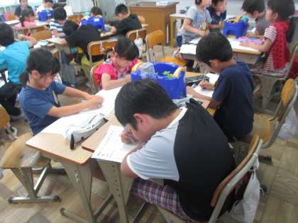 ホウセンカの観察をします。子葉からさらに葉が増え,草丈ものびました。