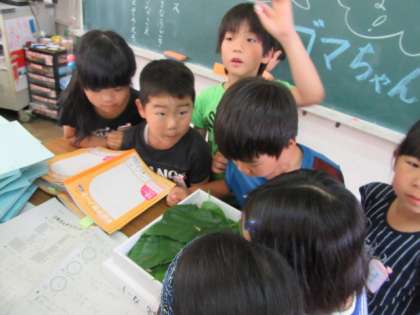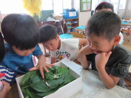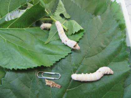 蚕の食欲は旺盛で,桑の葉をどんどん食べています。