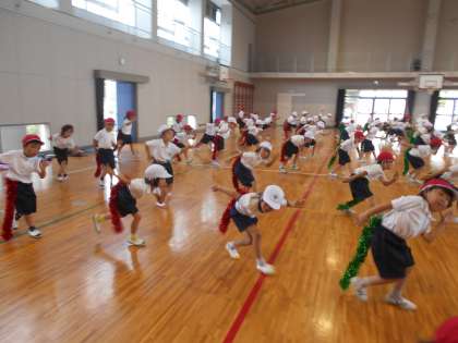 みんなで体育大会のダンスを踊った後にしっぽをつけてクラス写真をとりました。