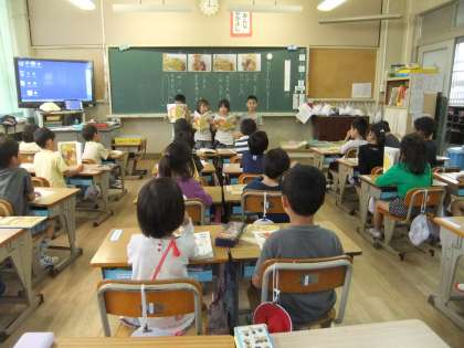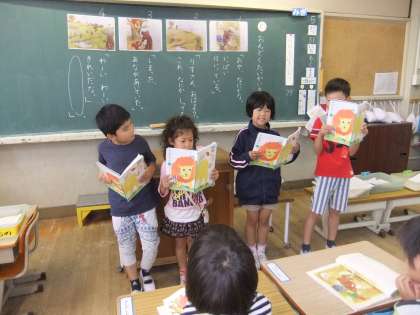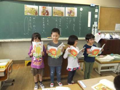 音読大会をしました。みんなの前で大きな声で,読むことができました。
